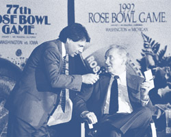 There was a time, however, when Rondeau considered testing the waters of television to find out how good he really was as a broadcaster. And in 1986, when KOMO lost the Huskies to KIRO radio, Rondeau¹s opportunity arose. He turned his attention to television for several years, but when KOMO took back the rights in 1989, the “Voice of the Huskies” was ready to go home.